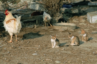 庭先の鷄と小猫達