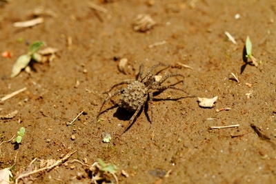 背中に子供を乗せて運ぶ、ウズキコモリグモ