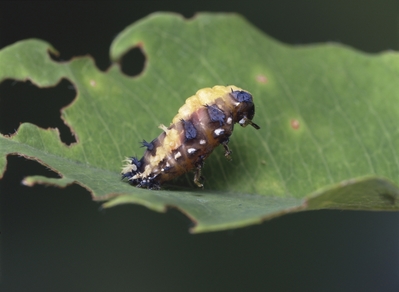 ②背中の皮が破ける 「テントウムシの変身 蛹化と羽化」