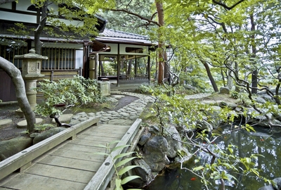 殿ヶ谷戸庭園の茶室と散策路