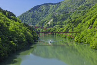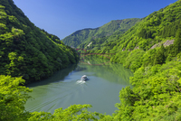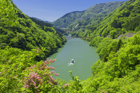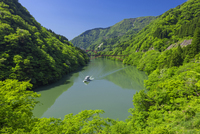 新緑の庄川峡と観光船