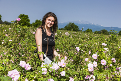 バラの花の収穫作業