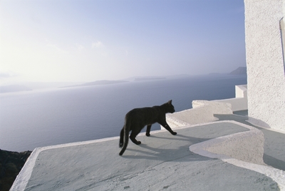 海と家並みと黒猫