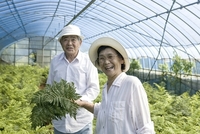 レザーファンを収穫する夫婦