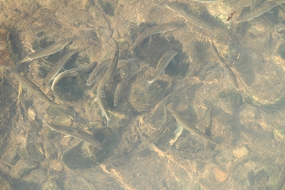 オイカワ(ヤマベ)、ニゴイ、ハヤ、アユ、などの小魚の群れ