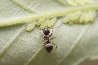 クロオオアリ甘露を分け合う