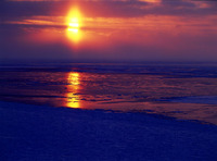 流氷と太陽柱 知床ウトロ