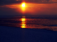 知床の流氷 夕景