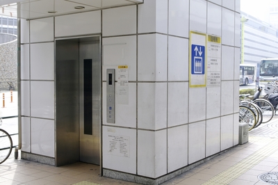 土台が補修されたエレベータがある新浦安駅前