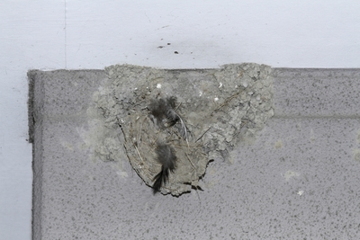 ツバメの壊れた巣、カラスに襲われた