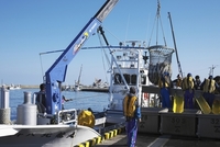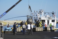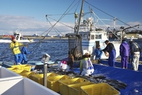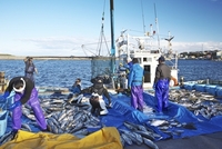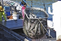 羅臼港のサケの荷揚げ
