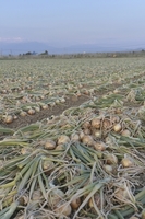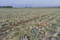タマネギ畑収穫中