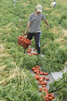 加工用トマトの収穫