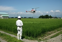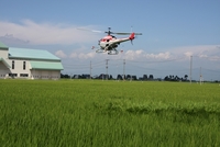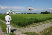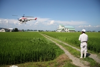 ラジコンヘリコプターでの農薬散布