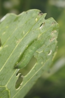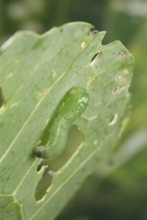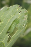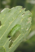 糸をだすモンシロチョウの幼虫