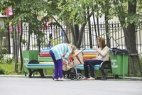 乳母車を押す女性
