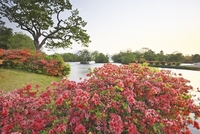 大沼のツツジと駒ヶ岳 朝