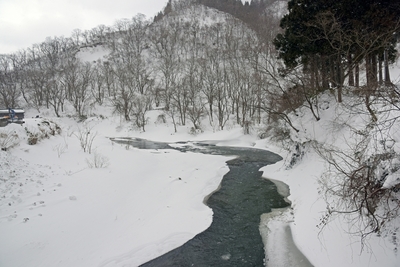 雪の積もった川