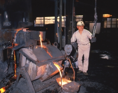 川口鋳物工場・キューポラから湯を取出す
