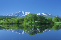 新緑の大谷地池から鳥海山(出羽富士)