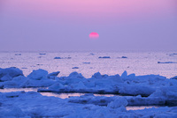 野付半島の流氷と根室海峡の日の出
