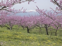 桃の花と南アルプス