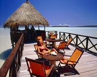 白いビーチとコテージ
