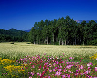 コスモスとソバ畑