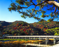 紅葉の嵐山渡月橋と松