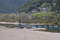 三里沈下橋と四万十川と尾形船