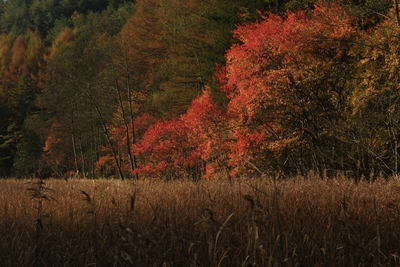 ヨシの原とカラマツ林