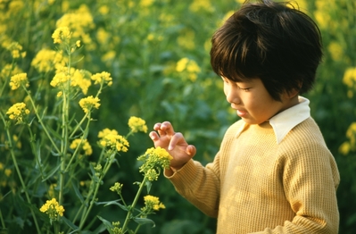 菜の花畑と子ども