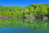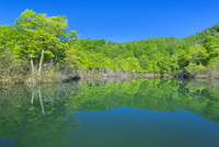 新緑の鎌池と雨飾山