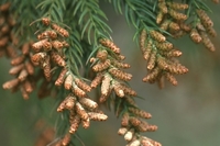 スギの雄花・花粉が付着している