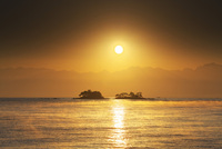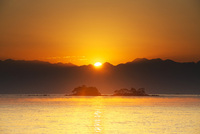 琵琶湖・湖北の朝日と竹生島