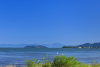 第二なぎさ公園から見る琵琶湖と沖島と伊吹山