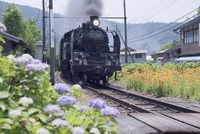 アジサイと大井川鉄道 蒸気機関車 崎平駅付近
