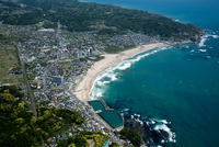 御宿海水浴場より御宿の街並みと御宿駅
