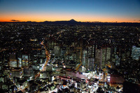 夜の新宿駅周辺より富士山