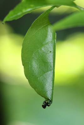 巣材の葉を運ぶハキリバチ