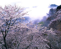 朝もやの奥千本からの桜 世界遺産