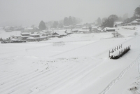 雪の水田と集落