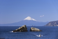 富士山と三四郎島と堂ケ島と駿河湾と青空