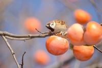 柿とスズメ
