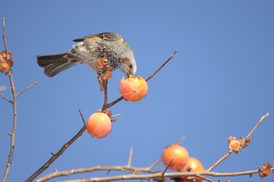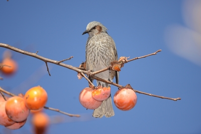 柿を食べるツグミ