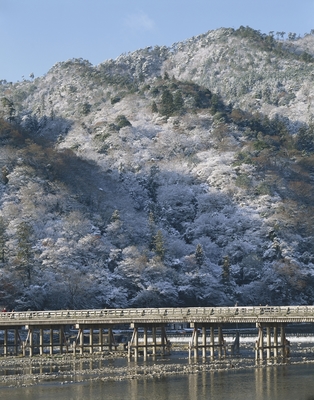 雪の嵐山渡月橋