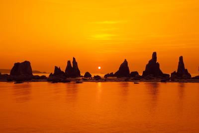 夕に染まる橋杭岩