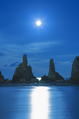 橋杭岩と月