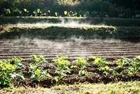 畑から上がる水蒸気