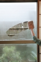 窓の結露を拭き取る